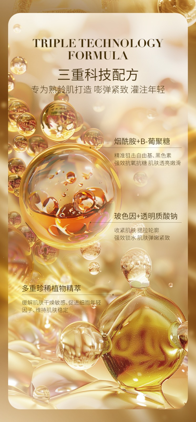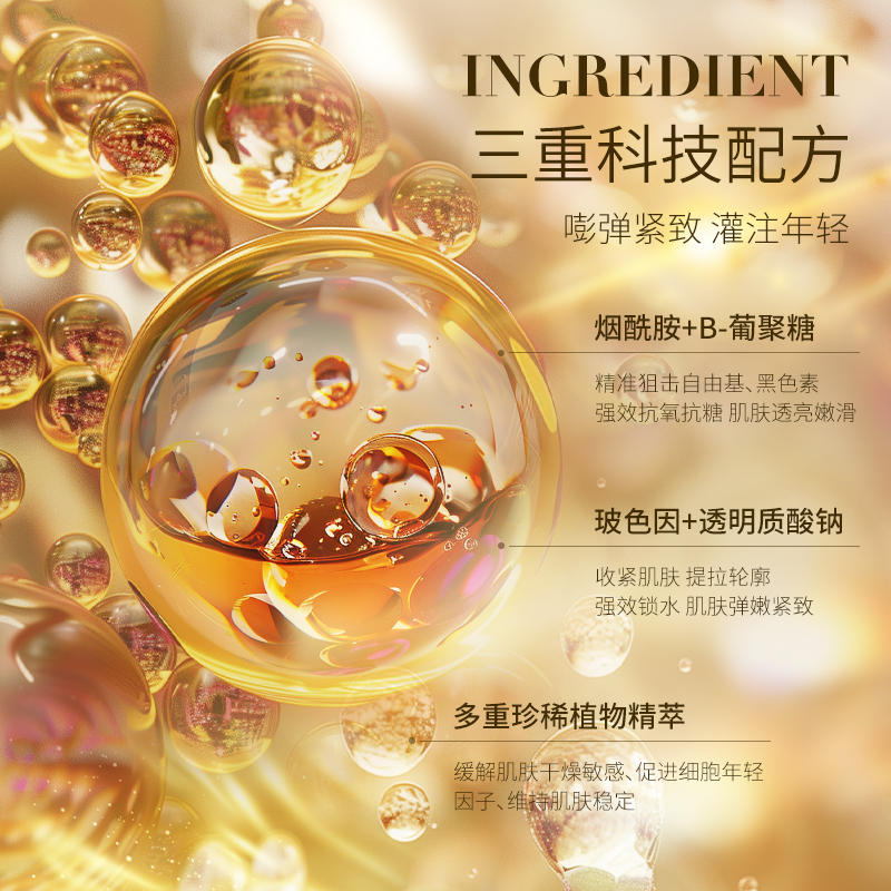 甄选透明质酸钠、透明质酸、积雪草等多重美肤精华成分,滴滴清润舒爽,清透润肤,补水保湿,改善干燥缺水现象,焕发水润光采。